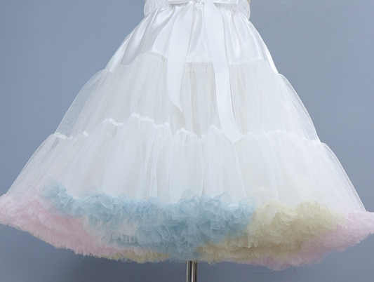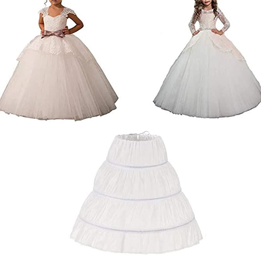 SSDH Children Princess Skirt Petticoat Girls Wedding Dress with Hoop Skirts Accessories Drawstring Adjustable Waist Lining White